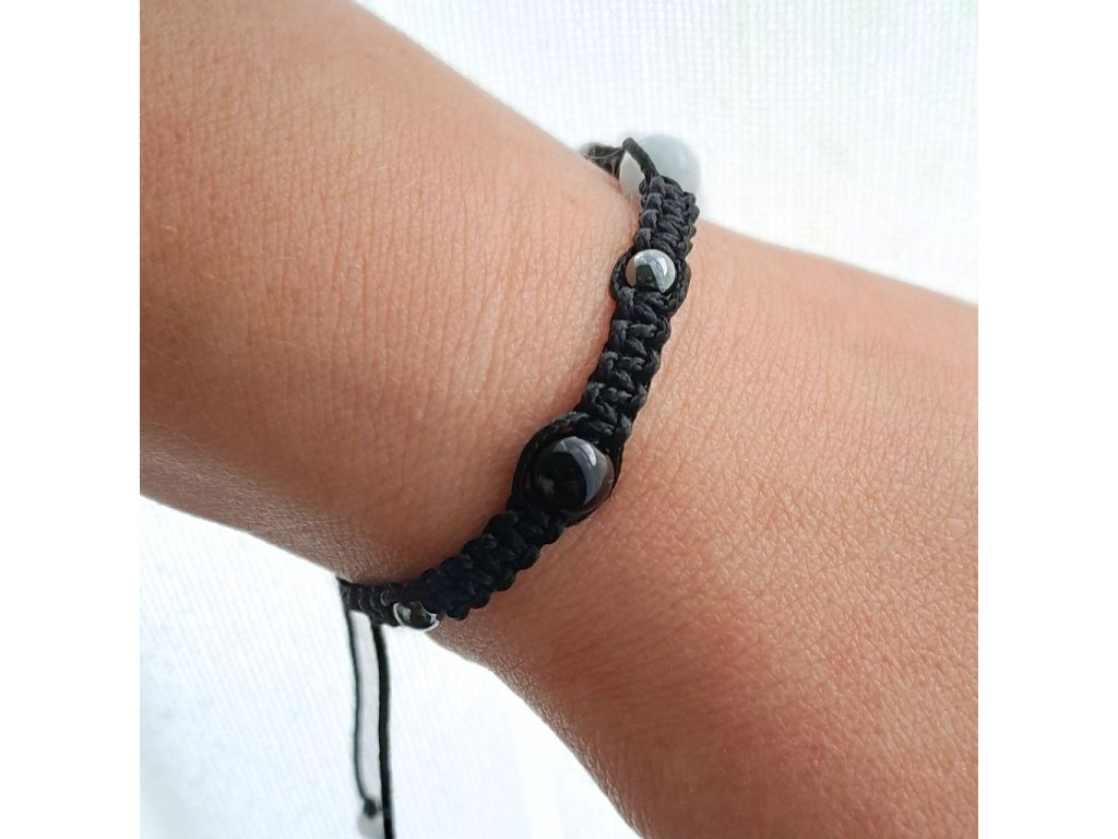 Tento silně uzemňující náramek je navržen jako opora pro ženy, které procházejí fyzicky i emocionálně náročným obdobím těhotenství. Akvamarín přináší klid a lehkost, pomáhá tišit úzkost, podporuje klidné dýchání a posiluje vnitřní důvěru. Černý achát dodává stabilitu a chrání před negativními vlivy z okolí i z vlastních myšlenek. Hematit pak symbolizuje vnitřní sílu a odvahu. Pomáhá při únavě, uzemňuje a posiluje psychickou odolnost.