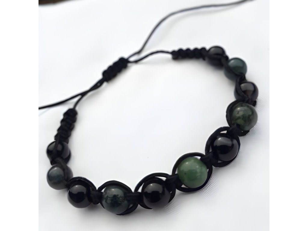 Shamballa náramek s achátem mechovým (zelené odstíny) a achátem černým.